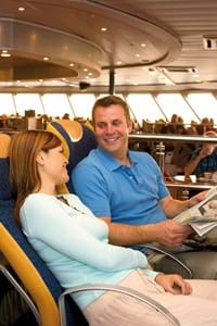 Settle down and relax on your short sea voyage of 3 hours across to Guernsey in the Channel Islands from Poole. Enjoy the views, treat yourself to a meal or snack, and enjoy a drink from one of the restaurants or bars. Enhance your journey with us by upgrading your seat for your sailing. Upgrade to the Horizon Lounge for unbeatable panoramic sea views, an exclusive bar, access to high-speed Wi-Fi and more. Or, go for the ultimate onboard experience in Club Class where your dedicated Club Class hosts will welcome you with a refreshing glass of prosecco, you’ll have at-seat service, complimentary Wi-Fi and more. Don’t miss the Adore Duty Free shop, for money-saving bargains available across fragrance, beauty products, top tech, gifts, confectionery, wines, spirits and tobacco.