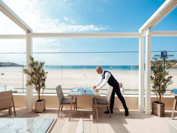 The Terrace at L'Horizon Beach Hotel & Spa boasts spectacular views of St Brelade’s Bay and offers an unrivalled al fresco dining experience in Jersey during the summer months. Fitted with a retractable roof with integrated lighting and heating, The Terrace allows for comfortable outdoor dining in any climate, against a backdrop of the ocean waves.