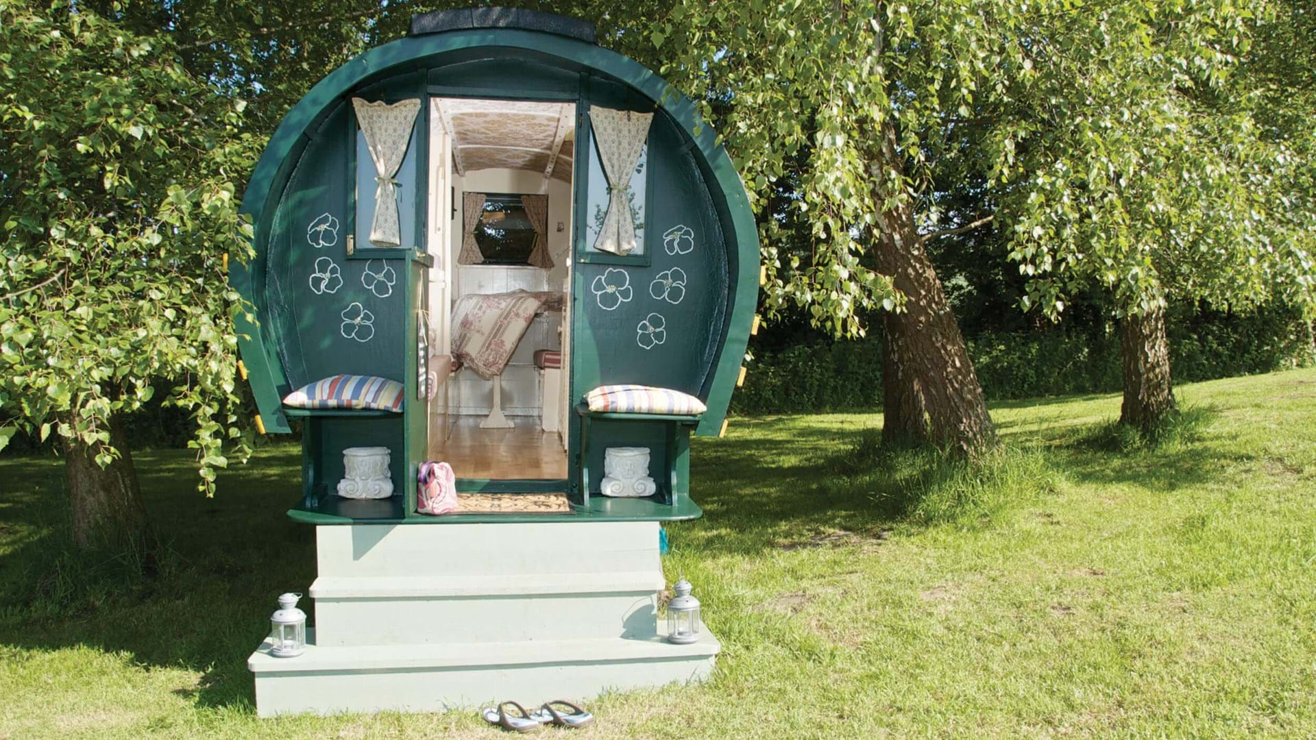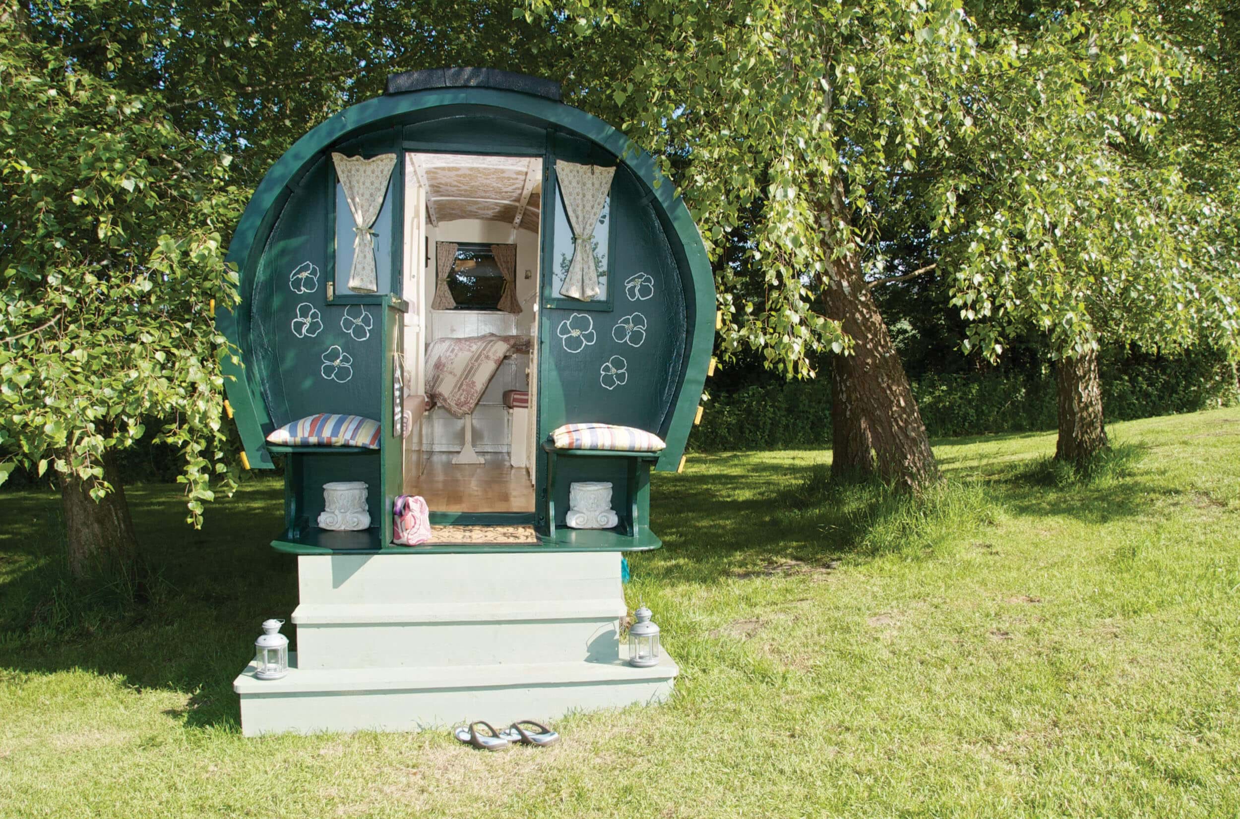 Stay in a traditionally painted gypsy caravan, overlooking the Cotin & Bessin National Park at Le Chateau de Monfreville – one hour from Cherbourg. Each roulotte can sleep up to five people and has a simple stove, cold box and barbecue. Enjoy the chateau’s bubbling hot tub, ping pong table and bike rides in the grounds and join the owners to feed the horses, donkeys, chickens, ducks, sheep and lambs.